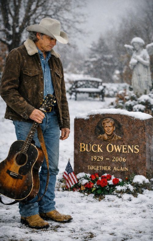 There are tributes built for cameras—big stages, bright screens, and a speech that tells you exactly what you’re supposed to feel. And then there are the tributes that don’t ask for attention at all. “Where the Bakersfield Wind Still Answers” belongs to that second kind, the kind that lands hardest precisely because it refuses to perform its own significance. In this imagined, intimate scene, Dwight Yoakam isn’t chasing an arena’s roar. He’s standing at the resting place of Buck Owens—hat pulled low, shoulders still, as if the best way to honor a legend is to speak softly enough that only the truth can be heard.