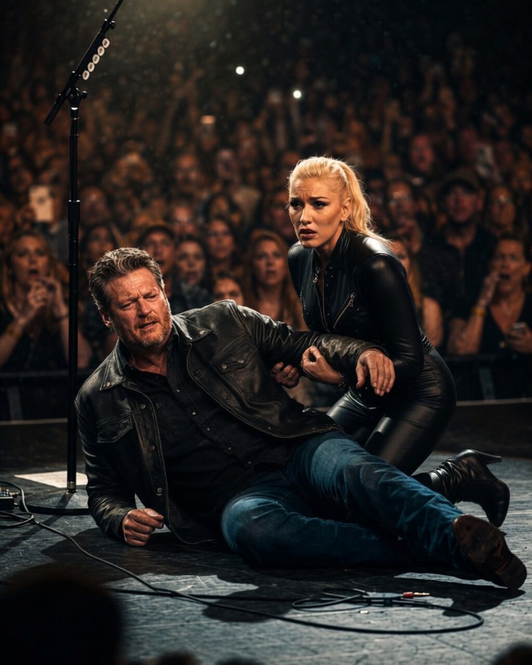 The most affecting detail in your passage is not spectacle, but stillness: “The crowd didn’t scream at first. It froze. Thousands of voices fell silent at once, as if the room itself was holding its breath.” That is beautifully observed. In moments of real fear, people often do not become louder. They become still. And that stillness can feel more dramatic than panic ever could. It turns an arena into something almost sacred, a place where uncertainty suddenly erases every ordinary boundary between performer and audience. In a single instant, the star onstage is no longer merely the center of entertainment. He becomes the focus of collective concern, hope, and helplessness.