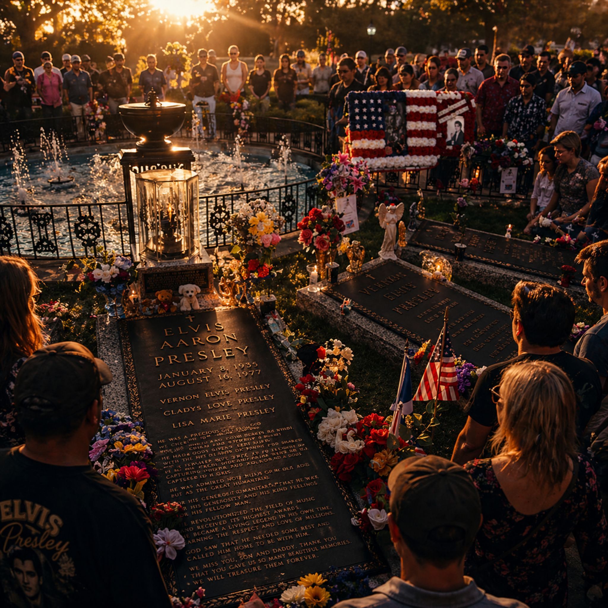 There are places in music history where applause no longer seems necessary. Graceland is one of them. At Elvis Presley’s grave, the atmosphere is not built on spectacle, flashing lights, or the roaring excitement that once followed him from city to city. It is quieter than that. Deeper than that. It is the kind of silence that does not feel empty, but full — full of memory, gratitude, grief, and the strange comfort that only a truly timeless voice can leave behind.
