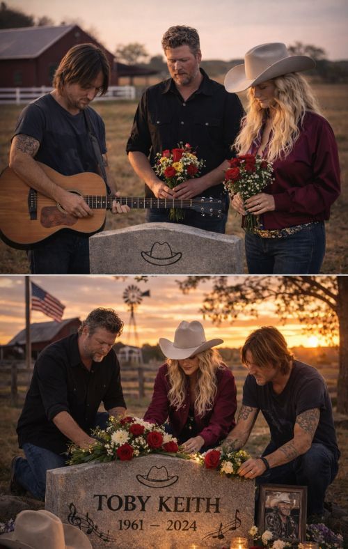 No Stage, No Applause — The Night Blake Shelton, Keith Urban, and Miranda Lambert Sang Goodbye to Toby Keith in Silence” is compelling because it understands that music, at its most powerful, is not always about being heard by thousands. Sometimes it is about offering one final song to the silence and trusting that the one you loved would understand it. In that setting, Blake’s guitar is not accompaniment. It is memory made audible. Keith’s voice is not performance. It is gratitude. Miranda’s harmony is not arrangement. It is grief finding form.