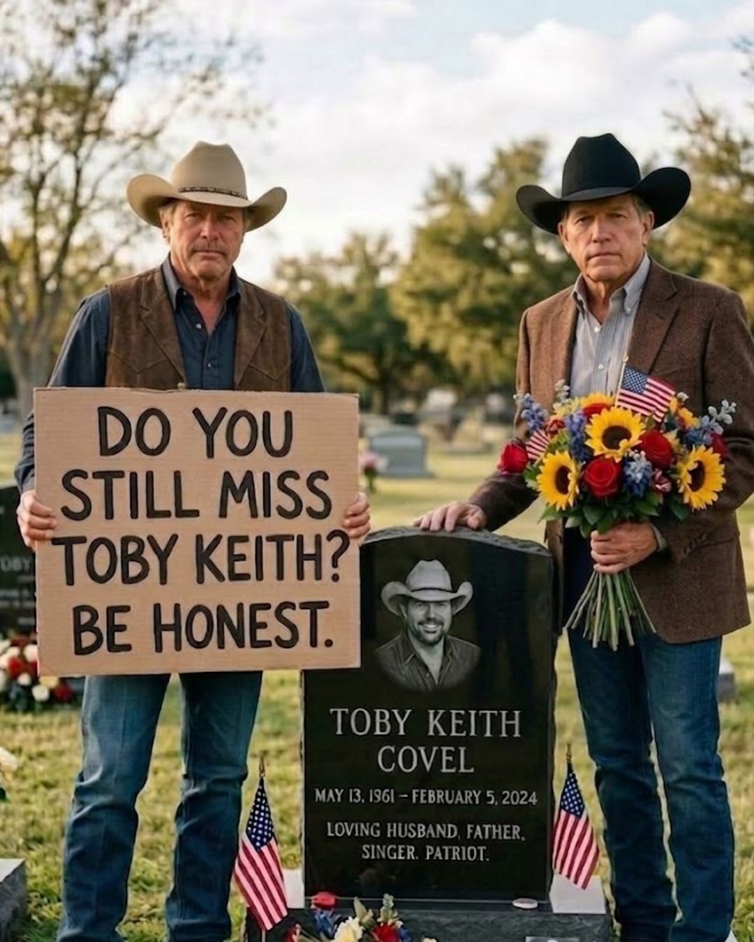 That is why the imagined silence of George Strait and Alan Jackson feels so meaningful here. Neither man needed to say much, because their presence already said enough. Hats in hand. Heads bowed. Wind moving through the grass. The scene is powerful precisely because nothing is exaggerated. No dramatic speech tries to explain what Toby meant. No public language interrupts the truth of the moment. Instead, silence is allowed to do what country music at its best has always done: hold emotion without forcing it.