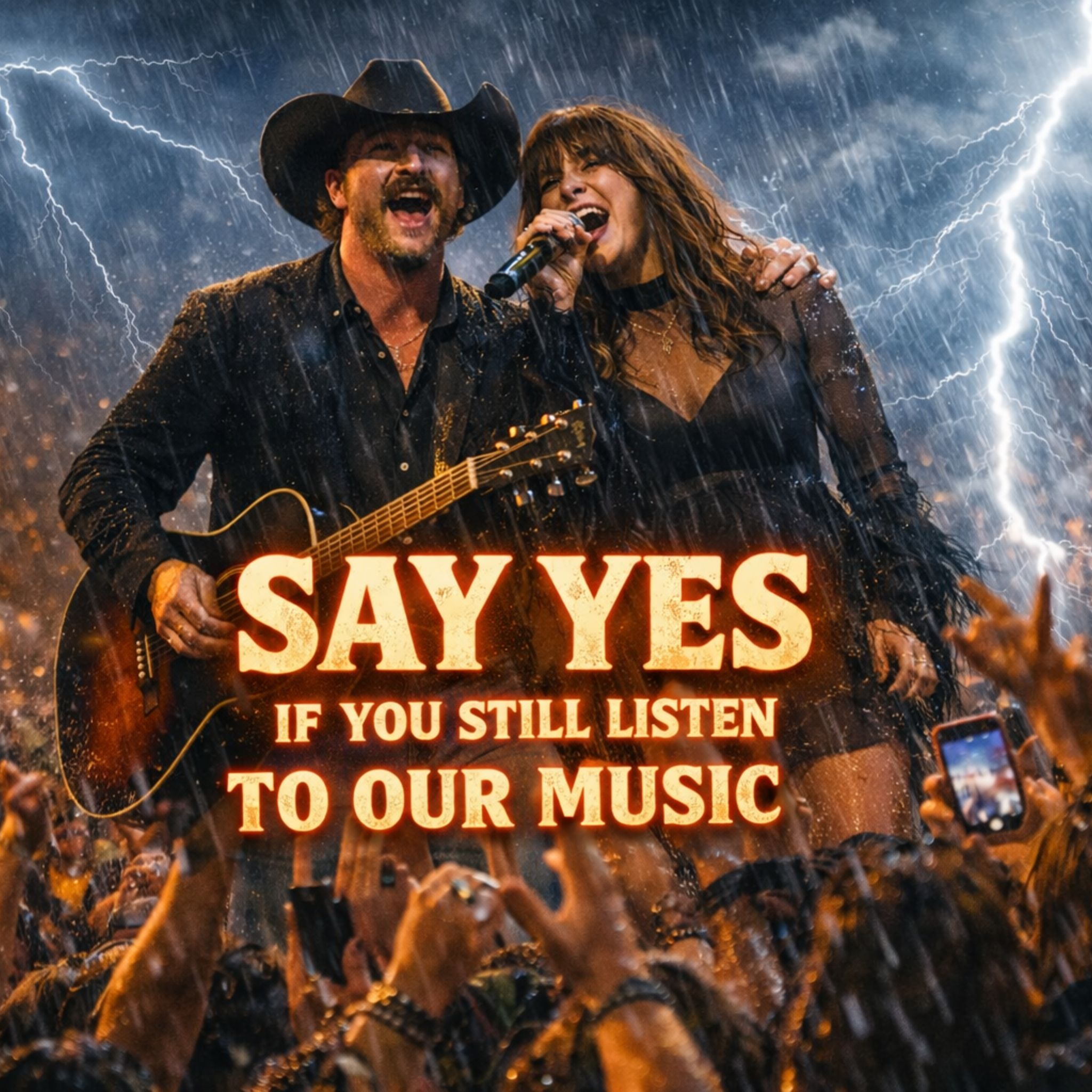 It became about what country music has always done at its best: telling the truth when things get messy. When Riley Green and Ella Langley smiled, it didn’t read like stage charm—it read like defiance. Not loud defiance, but the steady kind, the kind that says: we’ve all been caught in something we didn’t ask for, and we’re still here. The audience didn’t just watch; they joined. They sang louder than the thunder, not to prove anything online, but to hold the moment together in real time.