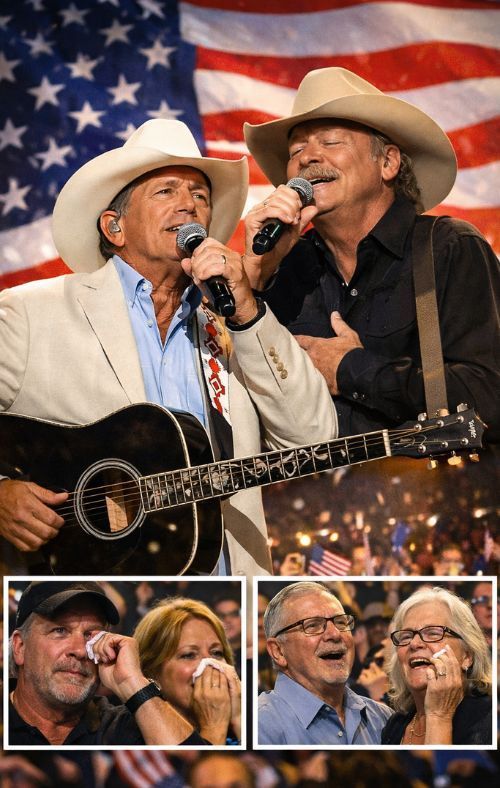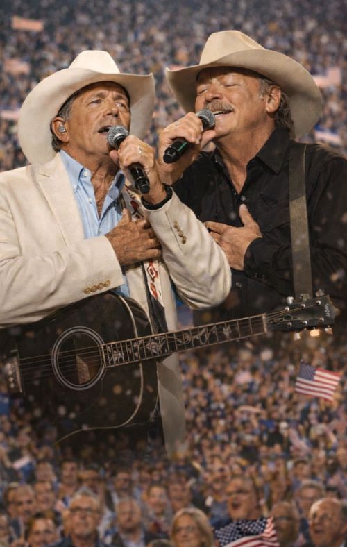 But in this dramatized scene, George Strait and Alan Jackson choose something rarer: restraint. Not passive restraint—active restraint. The kind that takes more control than anger ever does. These are two artists whose careers were built on steadiness: voices that never needed theatrics to feel enormous, men who understand that an arena can turn into a powder keg—or a sanctuary—depending on what you feed it. They don’t feed the noise. They starve it.