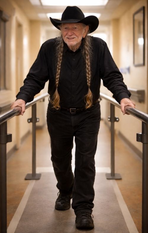 Willie Nelson has spent a lifetime making the complicated feel plain. His voice has never needed perfection; it needed presence. The phrasing, the grain, the weathered warmth—those weren’t studio inventions. They were miles. They were years. They were choices. And for an older audience especially, that kind of artistry isn’t admired because it’s flashy; it’s cherished because it’s honest. So when you picture Willie with his hands on the bars, boots dragging softly, breath measured like a metronome, you don’t just see rehab. You see the same stubborn steadiness that made his songs endure.