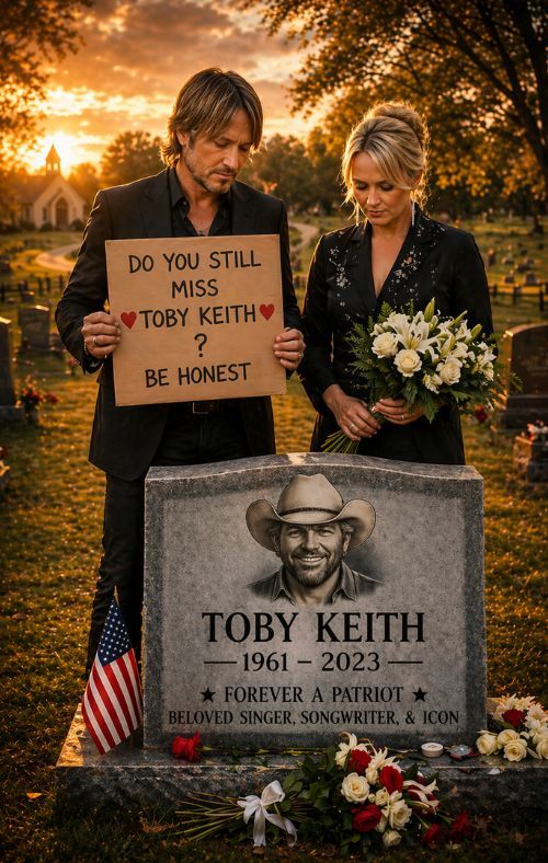 What makes this scene so moving is not action, but absence. There is no audience waiting to be impressed. No microphone in hand. No curtain call. Instead, there is open sky, soft evening light, and the imagined presence of two artists who understand that grief is rarely theatrical when it is real. Miranda Lambert and Keith Urban, in this vision, are not presented as celebrities caught in a dramatic tableau. They are something more affecting than that: two people standing still inside a moment of remembrance.