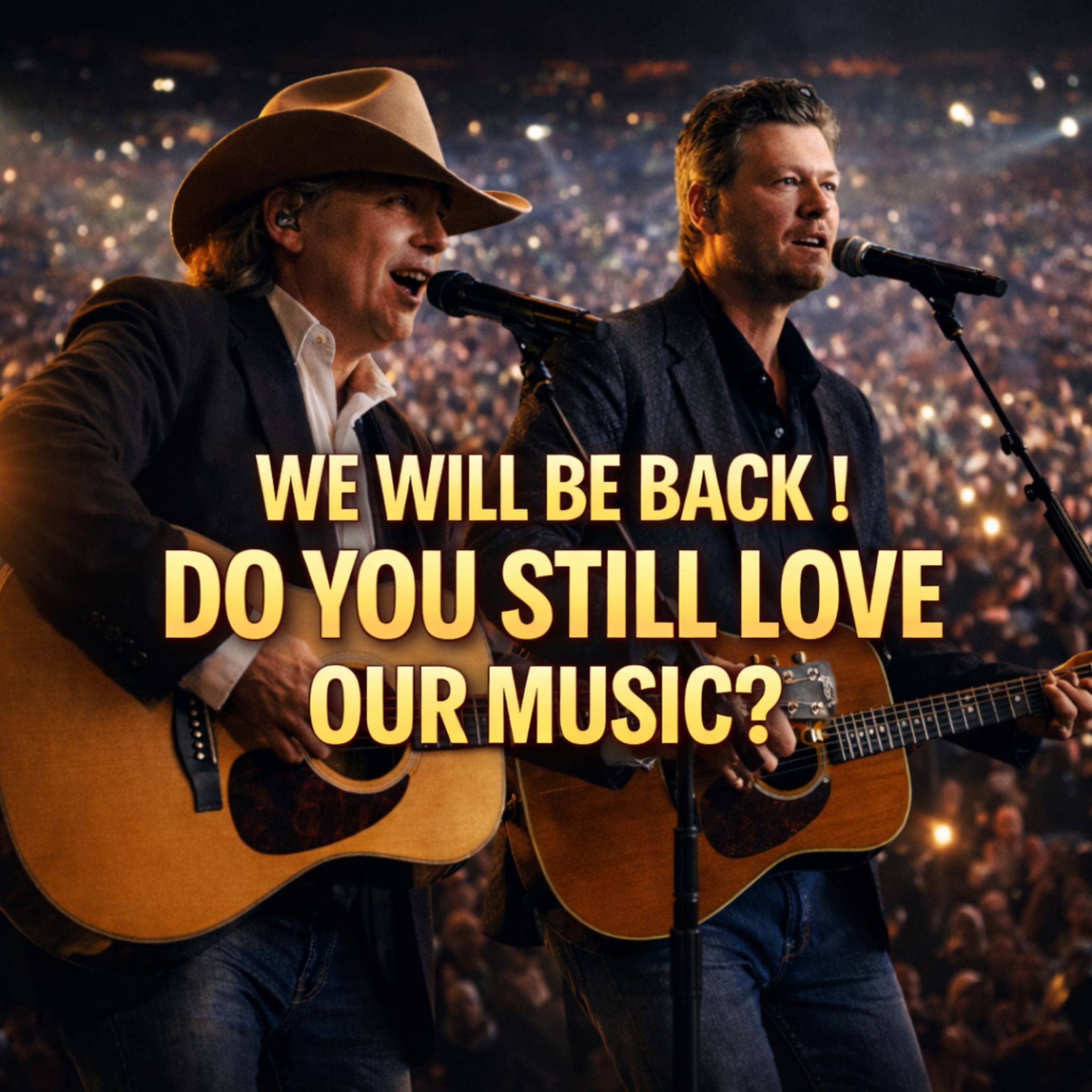 Blake Shelton, by contrast, brings a different energy to the stage. His presence is broader, warmer, more overtly charismatic. He knows how to work a large crowd without losing the grounded charm that made listeners trust him in the first place. Blake understands modern country’s scale, but he also knows how to honor the roots beneath it. That is why this pairing feels so compelling. One artist carries the sharp silhouette of older country defiance. The other carries the ease and reach of a newer era. Together, they do not cancel each other out. They complete the picture.
