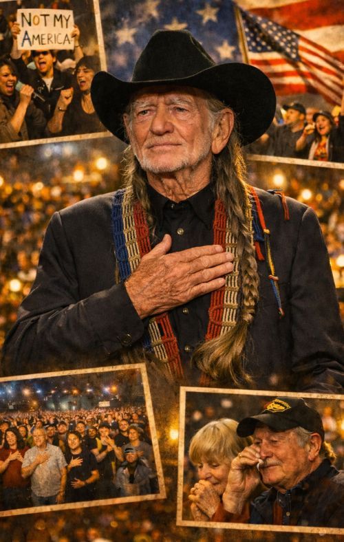 Some stories spread fast because they feel true—not necessarily because every detail has been confirmed by a headline, but because the heart of the moment matches what we already know about the artist. That’s why BREAKING NEWS: Willie Nelson’s took a stand last night that no one saw coming — but no one will ever forget. Midway through his live concert in Texas, as a handful of anti-American chants broke out near the front rows, the country superstar didn’t shout back. He didn’t storm off stage. Instead, he gripped the microphone… and began softly singing “God Bless America.” t first, it was just him — one steady, heartfelt voice. But within moments, the crowd of 25,000 rose to their feet and joined in, their voices swelling into a thunderous chorus that echoed into the night sky. Flags waved. Tears rolled. The chants were silenced. Willie Nelson’s didn’t just reclaim the stage — he showed the world what it means to lead with heart, humility, and unity instead of rage. lands like more than a viral anecdote. It lands like a musical philosophy distilled into one decision.