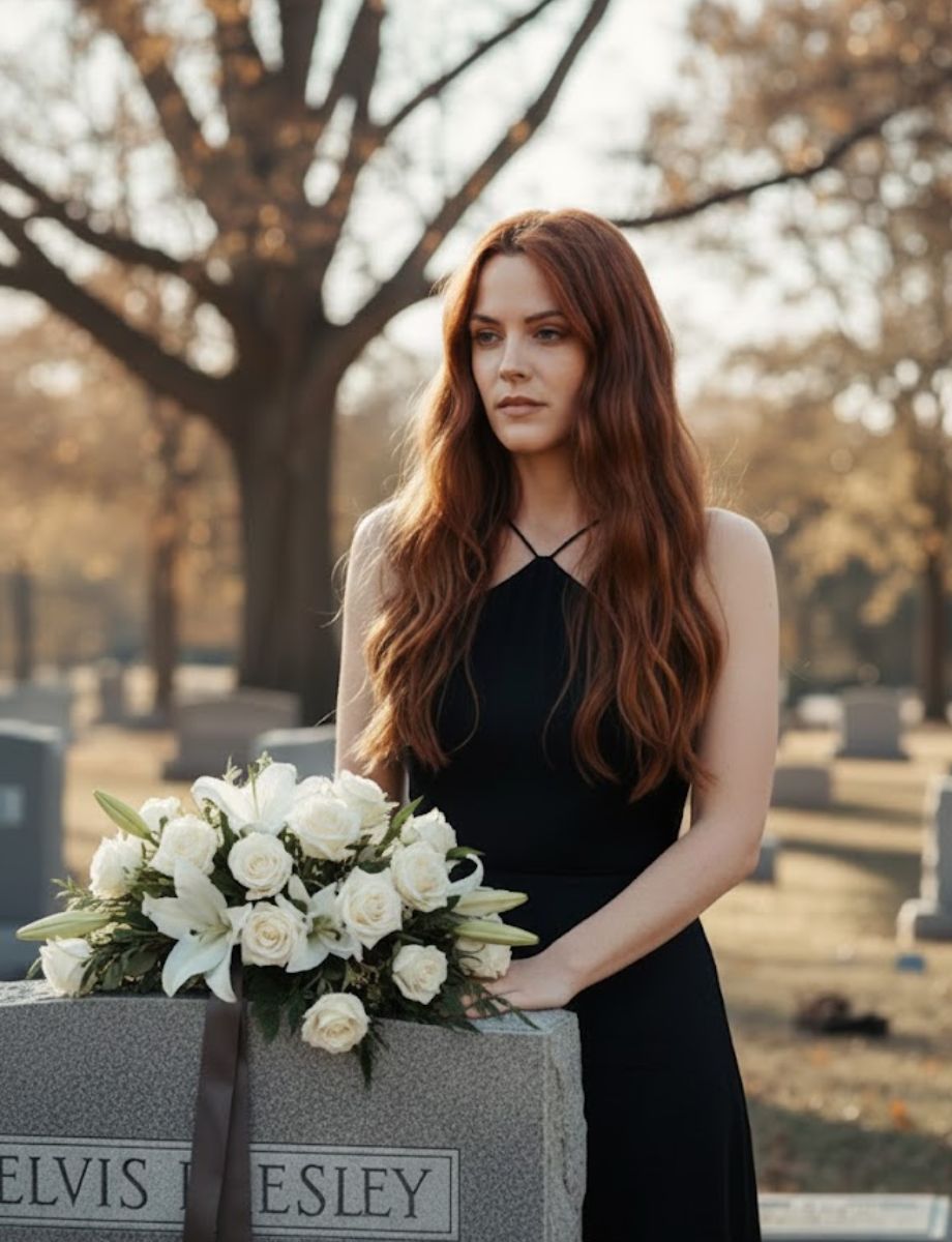 There are moments in the world of music that don’t need a stage, a spotlight, or even a sound to carry extraordinary weight. And when HEARTBREAKING MOMENT: A Silence That Spoke Louder Than Any Song Earlier today in Memphis, Tennessee, actress Riley Keough was seen standing alone at her grandfather Elvis Presley’s grave — no entourage, no cameras, just quiet remembrance beneath the soft autumn light. Witnesses say she stood there for several minutes, her hand resting gently on the marble, eyes glistening with unspoken emotion. In that silence, it felt as if generations of music, love, and loss came together — a moment where words failed, but the heart remembered everything., it became one of those rare instances where simplicity becomes more powerful than any tribute.