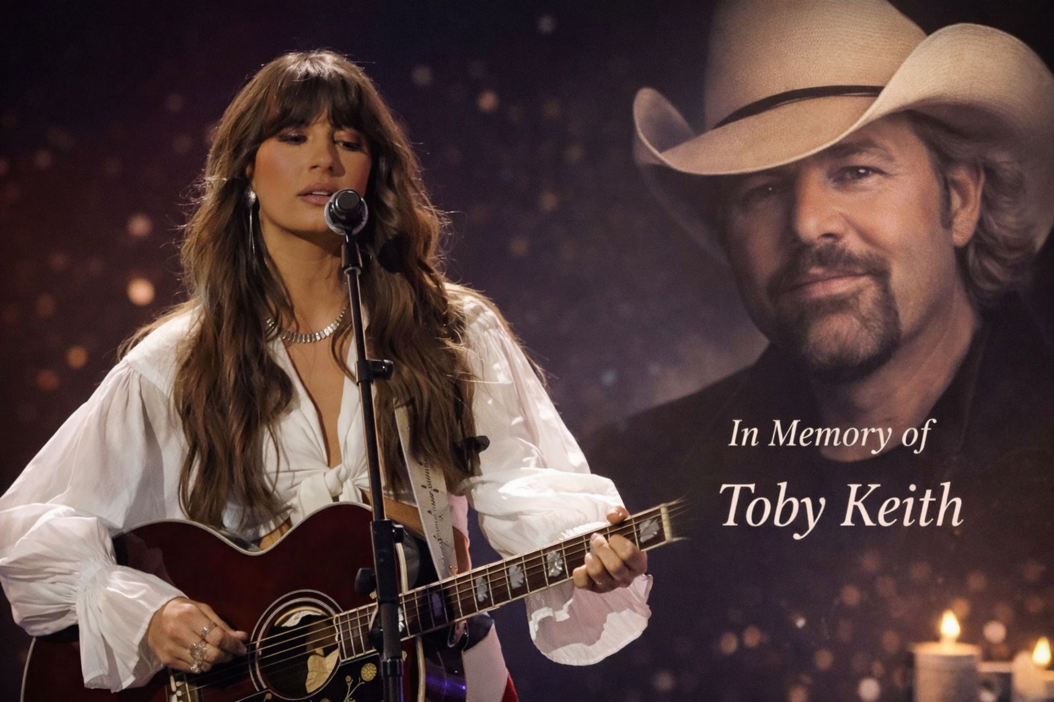 That’s what makes an Ella Langley tribute feel so potent in a live stadium setting. A younger artist stepping into a song that “already belonged” to Toby’s identity is not an easy thing. The risk is imitation or sentimentality. But the most effective tributes do the opposite—they don’t try to become the original. They translate it. They let the words do their work, then they bring their own breath, their own weight, their own era to the line. If she sang it with restraint—letting the melody remain steady and letting the silence around it speak—that’s exactly how a memorial becomes authentic. Audiences can smell theater from a mile away. But they recognize sincerity instantly, especially those who have lived long enough to know that grief rarely arrives in grand speeches. It arrives in a sentence you can’t finish, a song you suddenly can’t sing without swallowing hard.