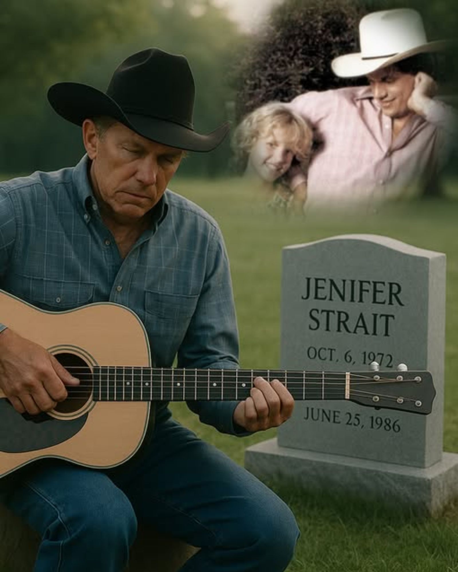 In 1986, tragedy struck the Strait family when George’s 13-year-old daughter, Jenifer Strait, was killed in a car accident. It was the kind of loss that changes a person forever. True to his private nature, George rarely spoke about it publicly. He carried his grief silently, letting the music speak where words could not. Then came “You’ll Be There” — released in 2005, nearly two decades after Jenifer’s passing — a song that felt less like a performance and more like a prayer.